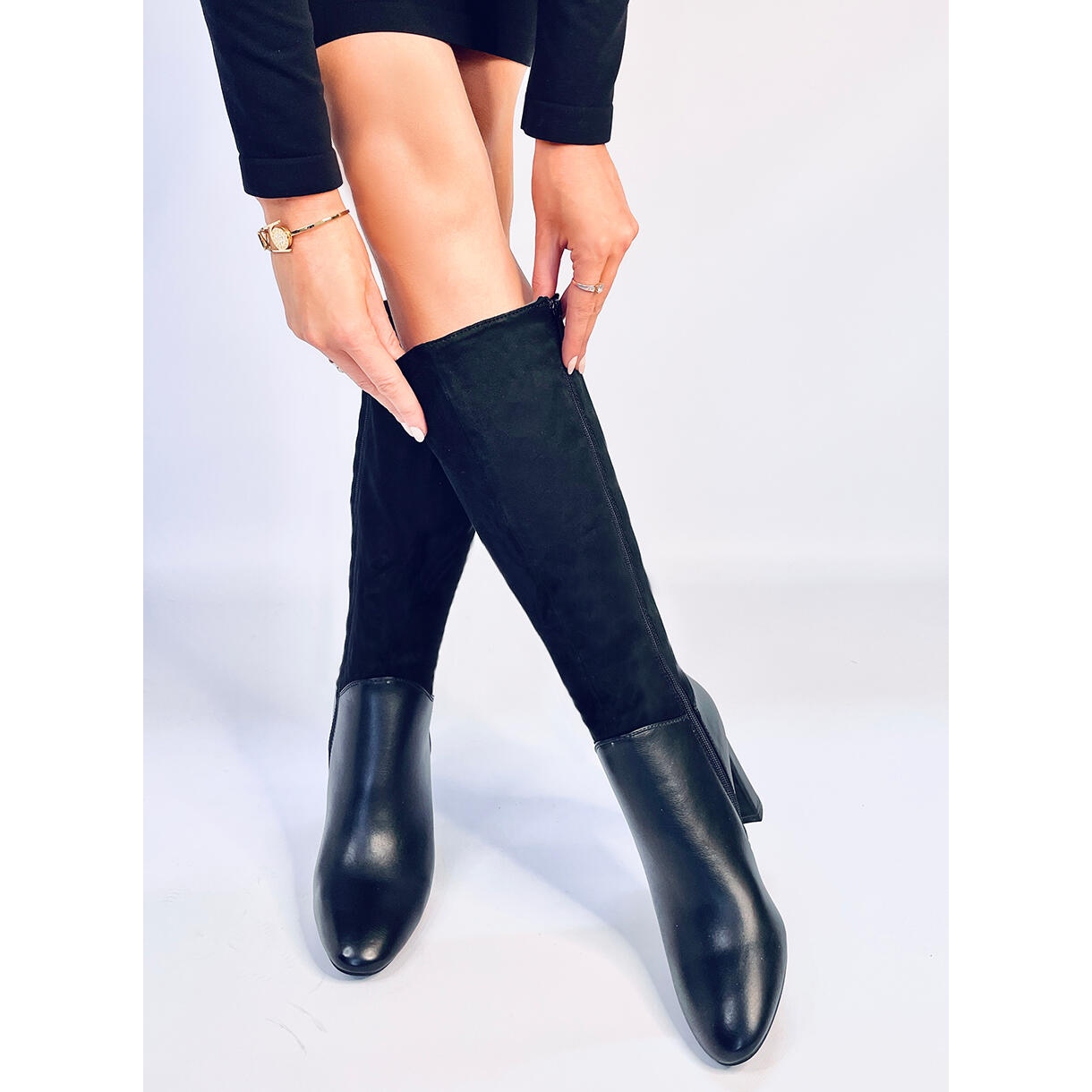 Les bottes classiques à talons hauts sont des chaussures élégantes et noires pour femmes. Ce modèle est extrêmement universel et s'intègre parfaitement dans les styles quotidiens et élégants. Les bottes sont faites de cuir et de daim écologiques, ce qui leur confère un charme unique et un look stylé. Une fermeture éclair sur toute la longueur de la tige permet de l'enfiler facilement, et la semelle antidérapante assure la sécurité lors de la marche. Les chaussures ont un talon bloc de 9 cm de haut, qui souligne encore davantage leur caractère élégant. De plus, les chaussures ont un bout rond et un design lisse et sans motif. La hauteur des bottes arrive jusqu'aux genoux, ce qui leur confère un caractère unique. Le produit est livré dans l'emballage d'origine du fabricant et est destiné aux femmes. L'intérieur de la chaussure est fini en tissu. Les bottes classiques à talons hauts Neita Black sont une combinaison de confort et de style classique qui permettront à chaque femme de se sentir spéciale.