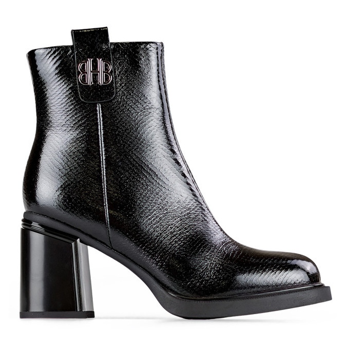 Détails: Bottines à talons hauts en cuir verni pour femmes, chaussures à talons hauts en cuir isolé noir