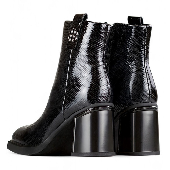 Détails: Bottines à talons hauts en cuir verni pour femmes, chaussures à talons hauts en cuir isolé le noir