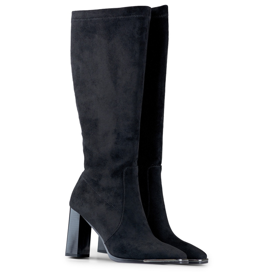 Détails: Bottines à talons hauts et bout pointu pour femme en daim noir GD-FL3040B le noir