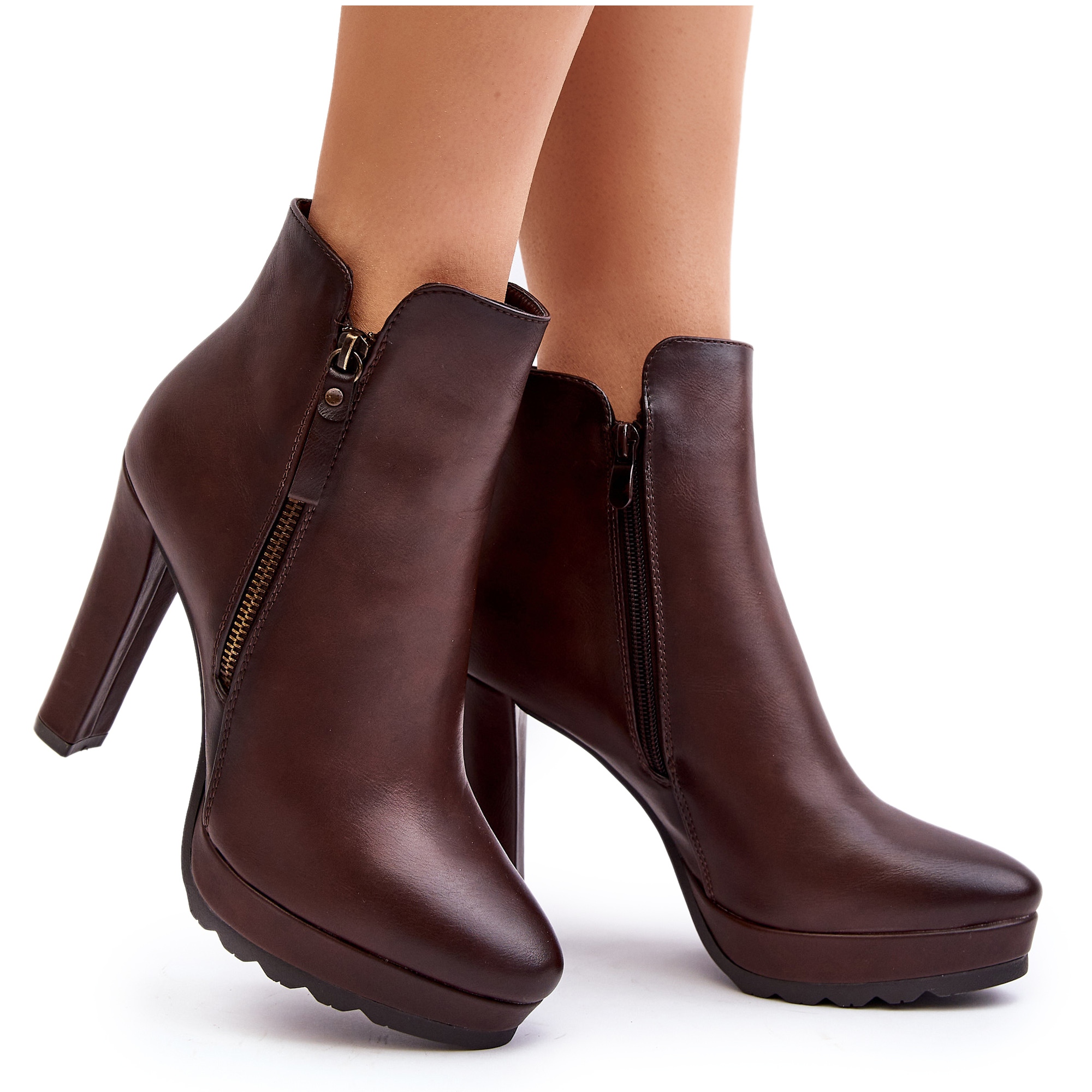 Bottines à talons hauts Inezma marron avec fermetures éclair - l'élégance avec une touche de praticité