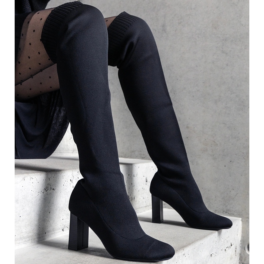 Les bottes ont été conçues dans un souci de facilité d'achat : leur conception à enfiler les rend faciles à enfiler. Fabriqués à partir de matériaux de haute qualité, le tissu extérieur et la semelle en plastique garantissent durabilité et design tendance. Les avantages supplémentaires incluent la hauteur des genoux (59 cm) et un talon de 8 cm, qui soulignent leur aspect stylé et élégant.
