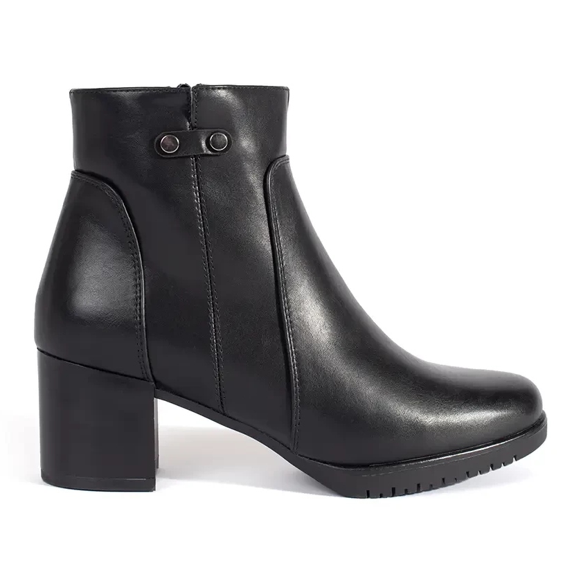 Le talon de 6 cm de haut sous la forme d'un poteau assure de la stabilité, et le talon construit ajoute du caractère et met l'accent sur l'élégance. Le nez rond rend les bottes non seulement à la mode, mais aussi à l'aise à porter, ce qui sera apprécié par chaque femme. La fourrure à l'intérieur des bottes rend les pieds enveloppés dans une chaleur agréable, ce qui est extrêmement important en automne et en hiver.