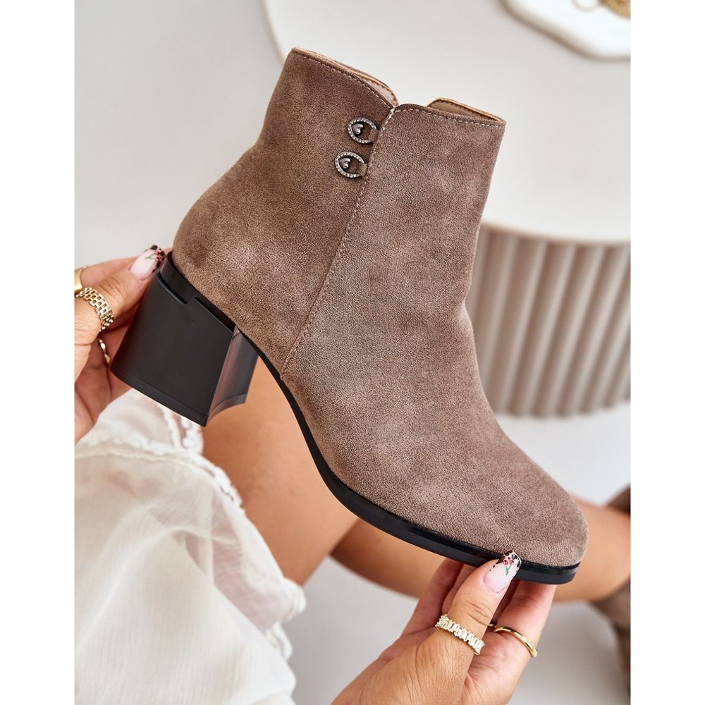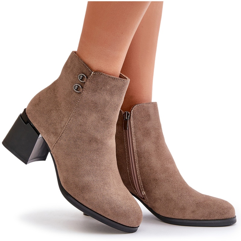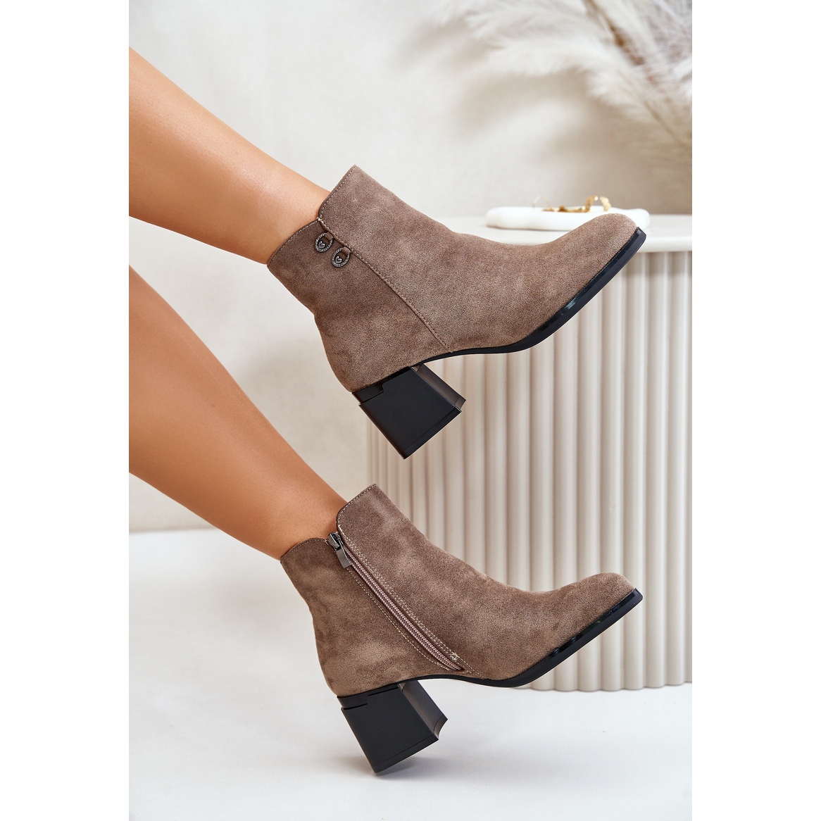 Détails: Bottines à talons hauts pour femmes fermées par une fermeture éclair, beige foncé par Tinamar