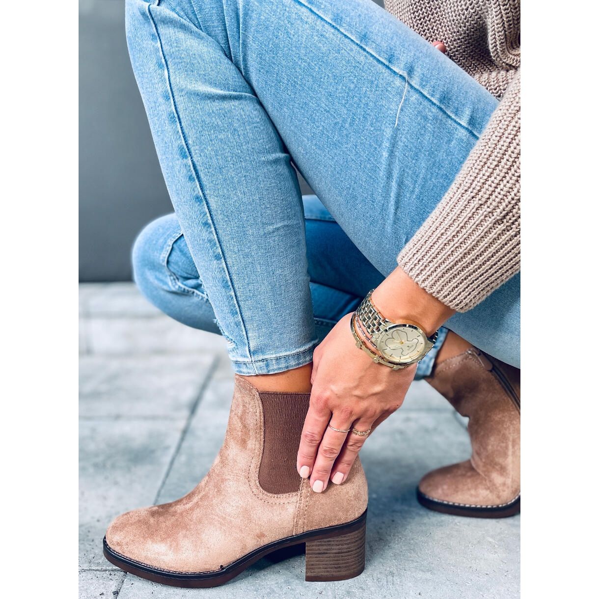 Fabriqués en daim écologique, ils se caractérisent par un matériau agréable au toucher qui non seulement est beau, mais assure également un confort de port. Une fermeture zippée sur le côté de la tige permet de l'enfiler facilement, et l'insert élastique au niveau de la cheville fait référence aux bottines Chelsea classiques, ajoutant un look moderne aux bottes.