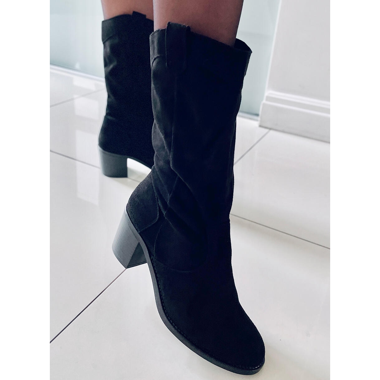 Découvrez l'élégance et le confort qu'offrent les bottes noires Mono Black. Ces bottes pour femme en daim avec un large talon de 6,5 cm sont le choix parfait pour un usage quotidien. Leur design minimaliste avec de subtiles coutures de style cowboy les rend non seulement à la mode, mais aussi extrêmement universels.