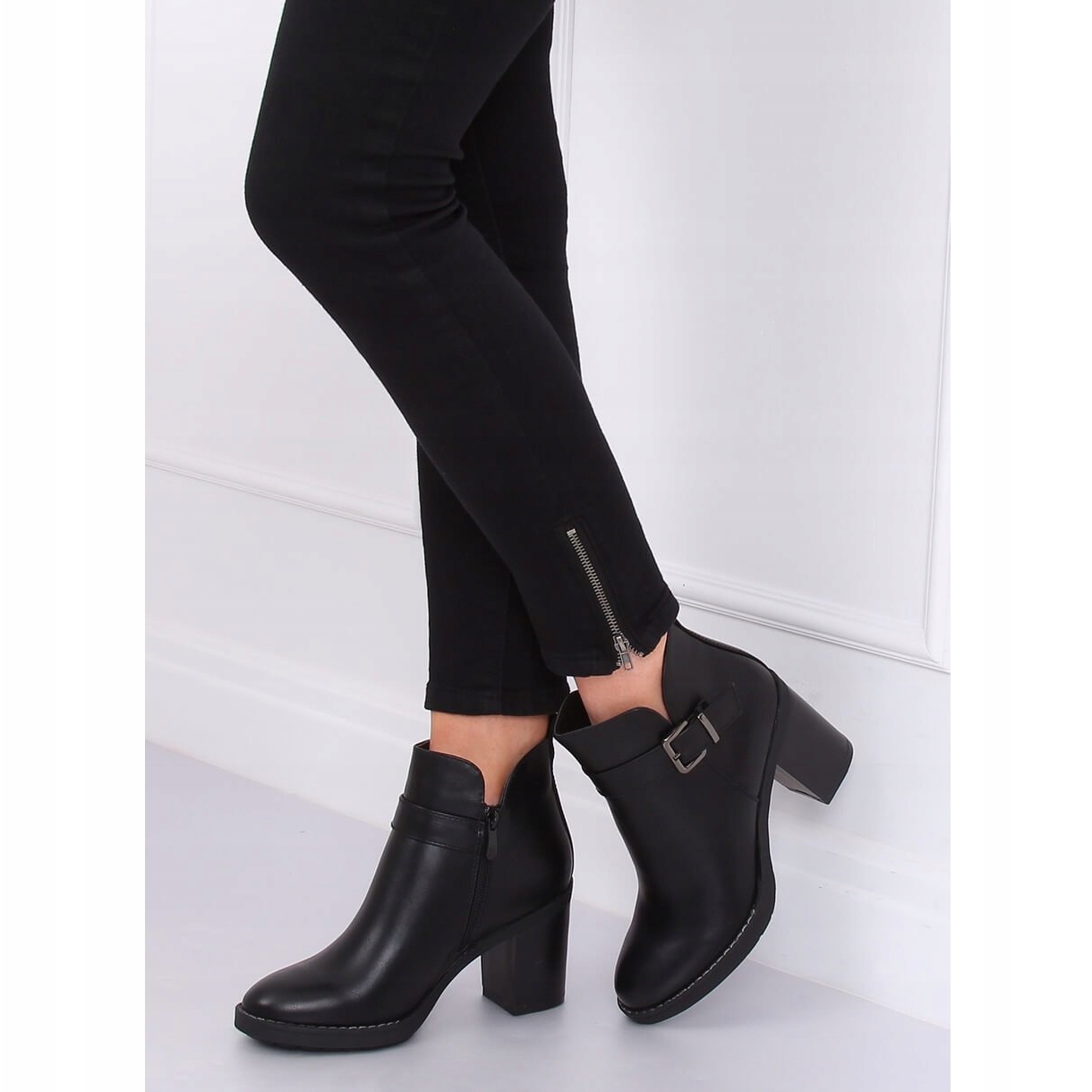 Inna marka Bottines à talons larges noires BM-9078 Noir le noir