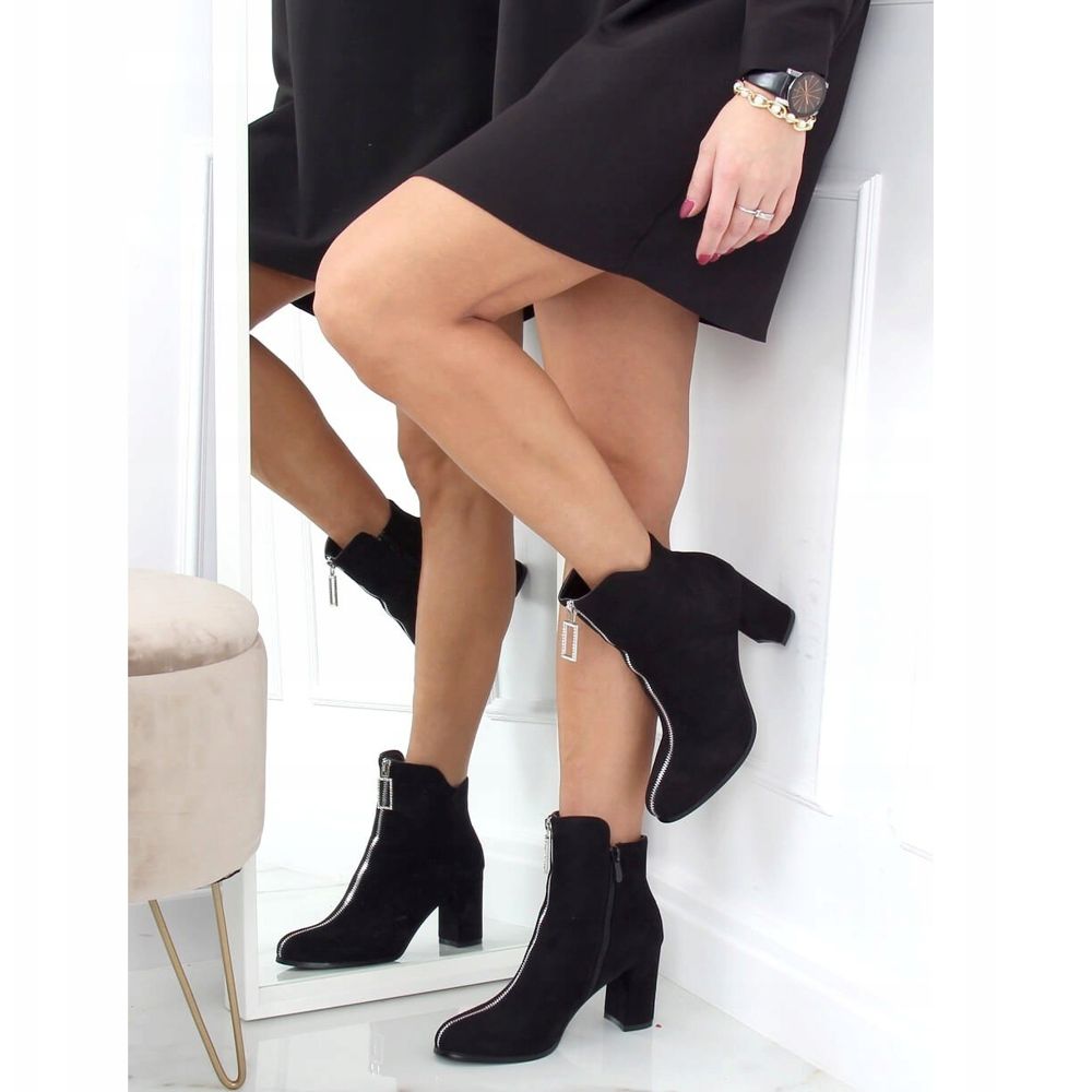 Découvrez l'élégance et le style unique avec les bottines noires à talons hauts 0-320 Black d'Inna Marki ! Ces bottines pour femme en daim, montées sur un talon haut stable de 7,5 cm, ajouteront du charme à tous vos looks. La couleur noire classique s'accorde parfaitement avec la subtile fermeture éclair argentée et la décoration brillante qui attirera tous les regards.