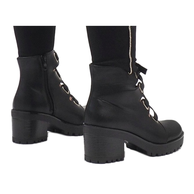Fabriquées en cuir écologique de haute qualité, ces bottes vous offriront confort et durabilité pendant longtemps. Le bout rond et la fermeture à boucle leur confèrent un charme subtil, et leur hauteur cheville (18 cm) les rend parfaites en toute saison. Des bottines noires à talons hauts d'une hauteur de 7 cm, avec un talon bloc, garantissent stabilité et confort de port même pendant une longue période.