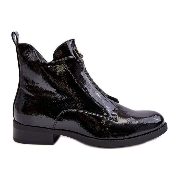 Détails: Bottines à Talons Plats en Cuir Verni pour Femme, Noir Chaud S.Barski HY75-120 Noir le noir