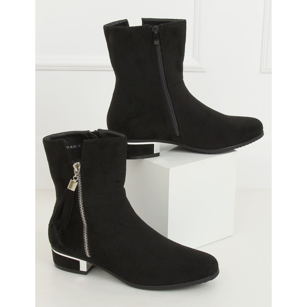 Grâce à la fermeture éclair pratique sur le côté de la tige, enfiler et enlever les chaussures devient simple et rapide. Ces bottines sont fabriquées en daim écologique, ce qui les rend à la fois élégantes et respectueuses de l'environnement. L'intérieur est isolé avec une fourrure douce pour plus de confort lors des journées plus froides, et le talon plat de 3 cm de haut les rend parfaites pour un usage quotidien.