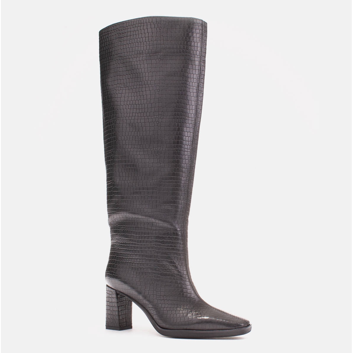 Les bottes à talons hauts Marco Shoes sont un choix idéal pour les femmes aux mollets larges qui apprécient à la fois le style et le confort. Fabriquées en cuir fleur naturelle de haute qualité, ces bottes noires se distinguent par leur design élégant, parfait pour toutes les occasions.