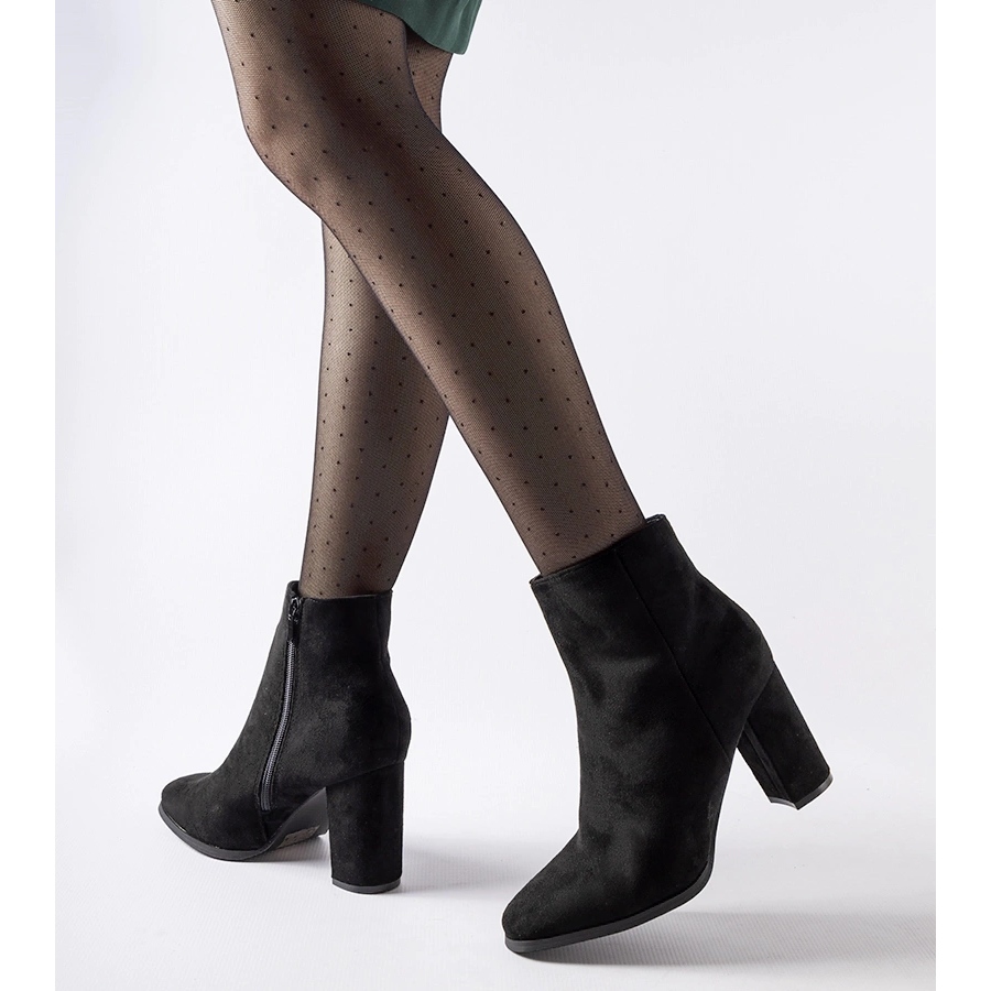 Les bottines noires à talons hauts sont des chaussures pour femmes au design original et moderne. Ils arrivent légèrement au-dessus de la cheville, ce qui ajoute du style et de la fonctionnalité. Elles se distinguent par un bout carré, qui souligne l'individualité de celle qui les porte. Le matériau extérieur est en cuir écologique suédé et la semelle est en plastique, ce qui garantit la durabilité et la résistance des chaussures à diverses conditions météorologiques. La fermeture éclair pratique facilite l'enfilage et le retrait des chaussures. Les bottes sont isolées, ce qui offre un confort même les jours les plus froids. Les bottes ont une numérotation standard et pèsent 1 kg avec emballage individuel. Le produit provient de la collection automne-hiver, est neuf et possède son emballage d'origine. Le matériau de l'insert est du tissu, ce qui augmente le confort d'utilisation. Ces bottes n'ont pas de caractéristiques ou de motifs supplémentaires - elles sont universelles et élégantes. Parfait pour les femmes qui apprécient une combinaison de style et de confort.