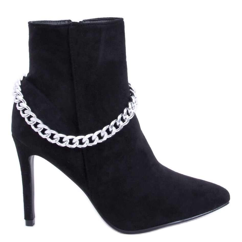 Grâce à leur couleur noire classique, ces bottines élégantes sont parfaites aussi bien pour le quotidien que pour les occasions spéciales. De plus, la chaîne subtile leur ajoute un caractère original, ce qui en fait non seulement une chaussure, mais un véritable article de mode.