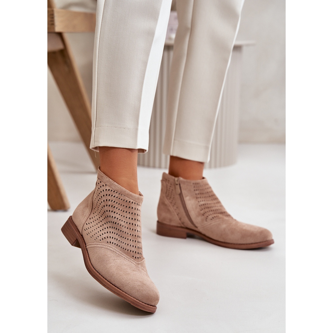 Détails: Bottines Ajourées à Talon Plat pour Femme Beige S.Barski HY42-076