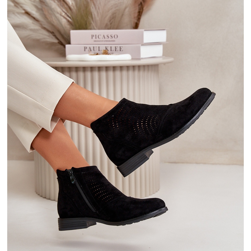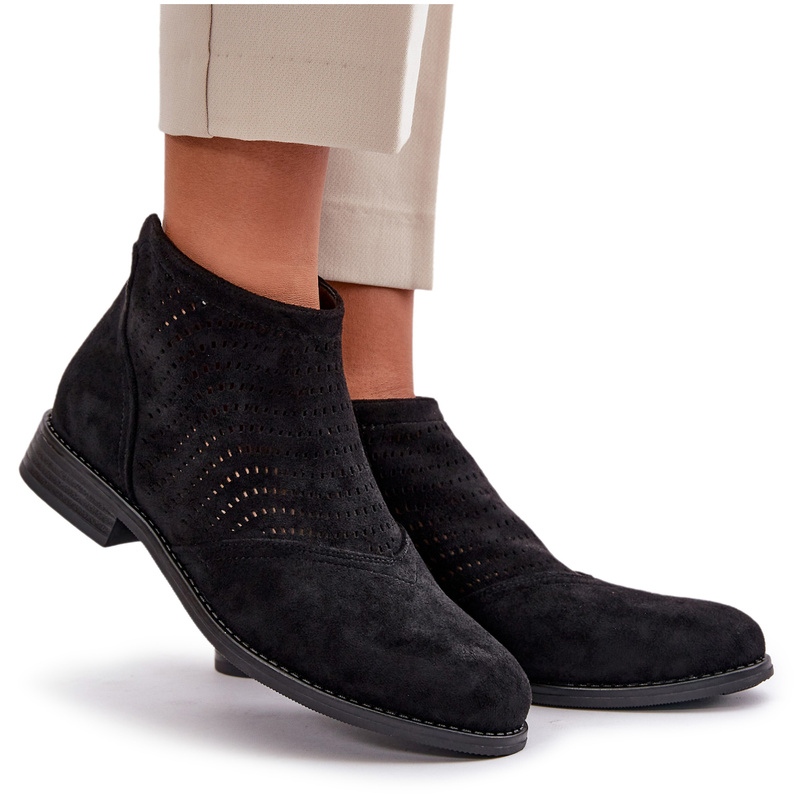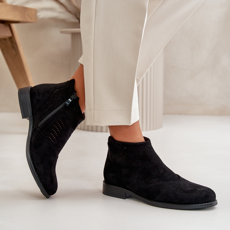 Détails: Bottines Ajourées à Talon Plat pour Femme Noir S.Barski HY42-076 le noir