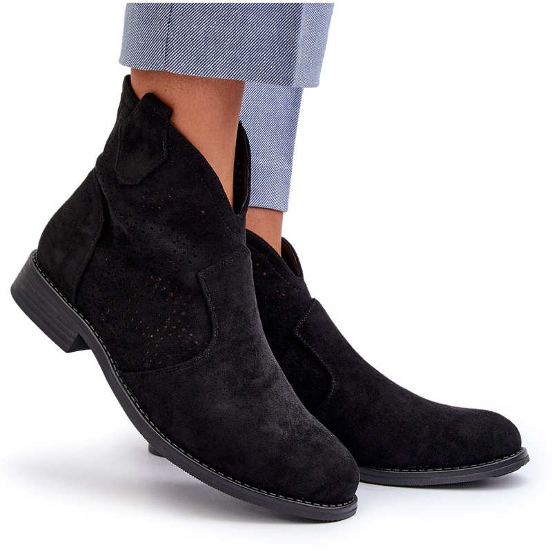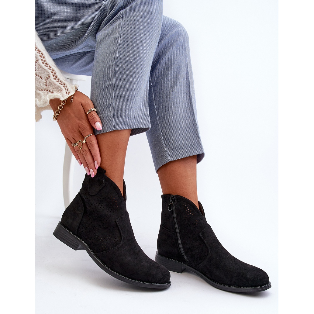 Détails: Bottines Ajourées à Talon Plat pour Femme Noir S.Barski HY66-151 le noir
