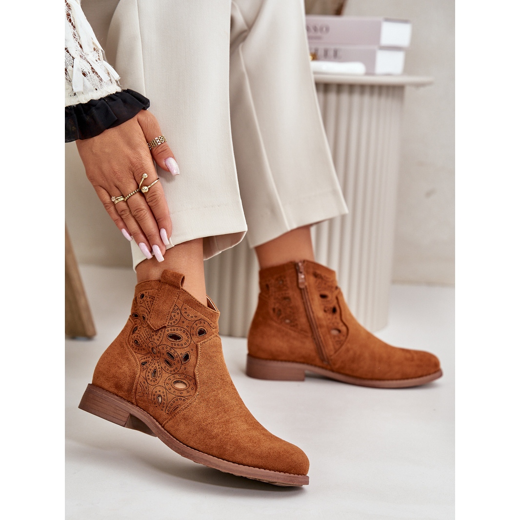 Détails: Bottines Ajourées Avec Fermeture Éclair Femme Camel S.Barski HY42-081 brun