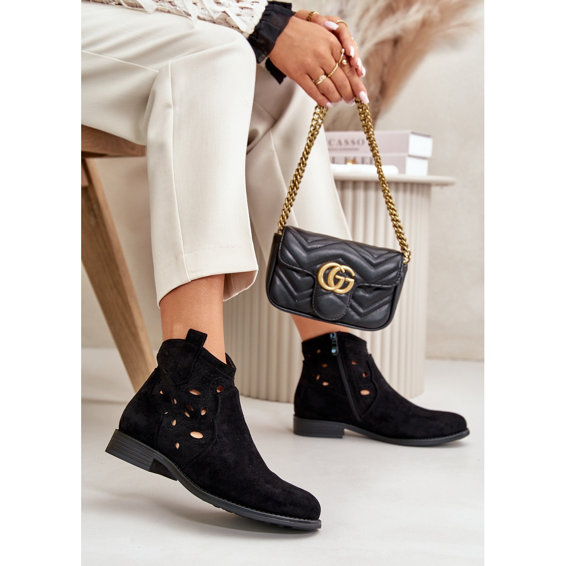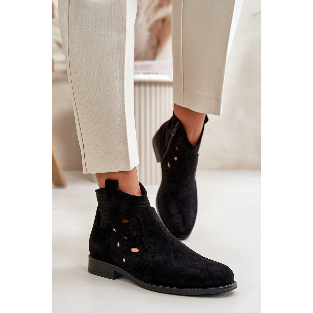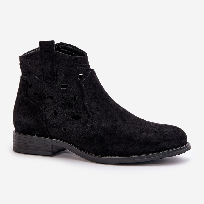 Découvrez l'élégance et le confort avec les bottines noires ajourées à fermeture éclair pour femme de la marque S.Barski ! Ces bottes élégantes sont fabriquées en éco-daim de haute qualité, ce qui garantit non seulement un look à la mode, mais dure également plus longtemps. La tige ajourée, arrivant au-dessus de la cheville, ajoute de la légèreté à n'importe quel style, et le talon plat de 3 cm de haut assure stabilité et confort au porté.