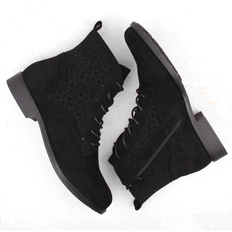 Détails: Bottines ajourées en daim pour femme, noires S.Barski HY42-136 le noir