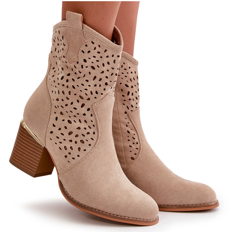 Détails: Bottines ajourées en éco-daim, fermées par une fermeture éclair, beige Sevana