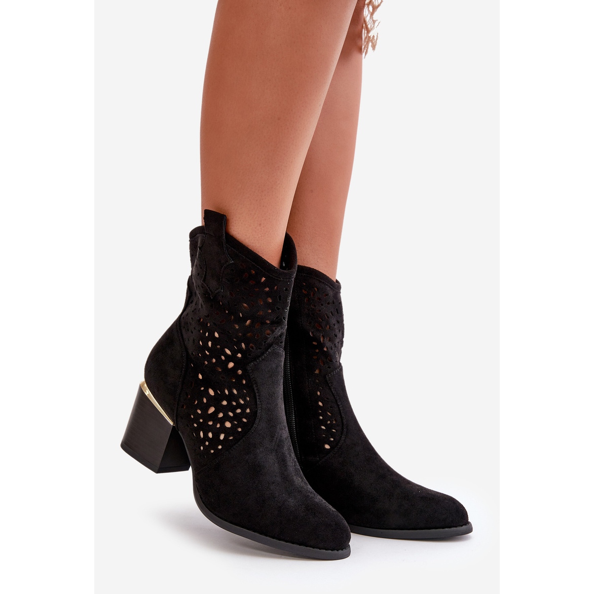 Détails: Bottines ajourées en éco-daim, fermées par une fermeture éclair, noires Sevana