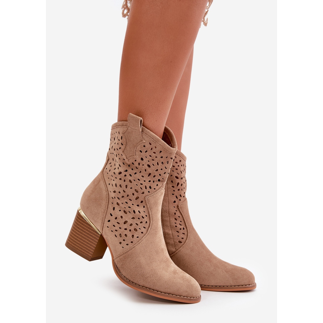Détails: Bottines ajourées en suède écologique, fermées par une fermeture éclair, beige foncé Sevana