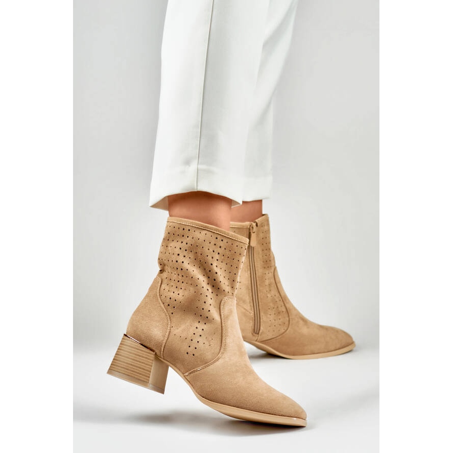 Découvrez le confort et le style avec les bottines à talons hauts ajourées pour femme de couleur beige (modèle RQ468KH). Ces chaussures uniques allient élégance et fonctionnalité au quotidien.