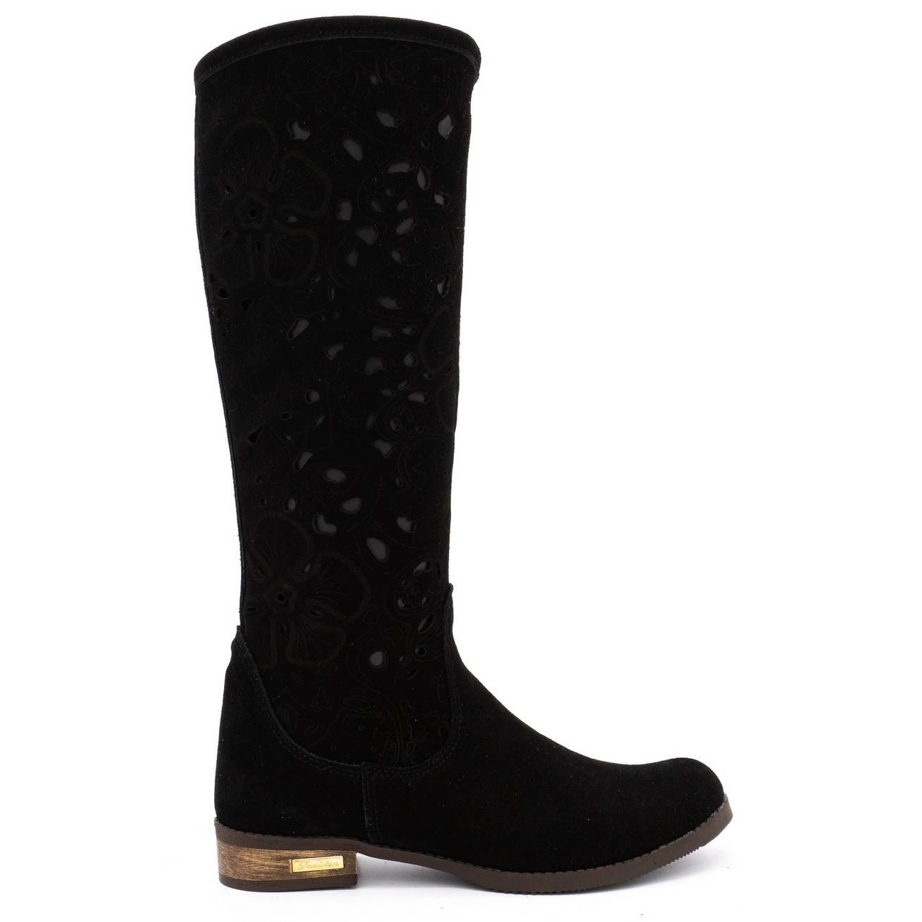 Des bottes féminines élégantes en nubuck naturel, combinant le confort de porter avec un motif féminin et ouvert avec des fleurs. La peau douce s'adapte parfaitement au mollet et les découpes géométriques assurent une respiration adéquate - parfaite pour le printemps et l'automne. La longueur classique du genou signifie que les chaussures correspondent aux robes et aux jupes ou aux pantalons ajustés.