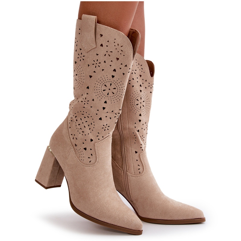 Détails: Bottines Ajourées Pour Femme Sur Talon Haut Bout Pointu, Eco Daim Beige Nevithra
