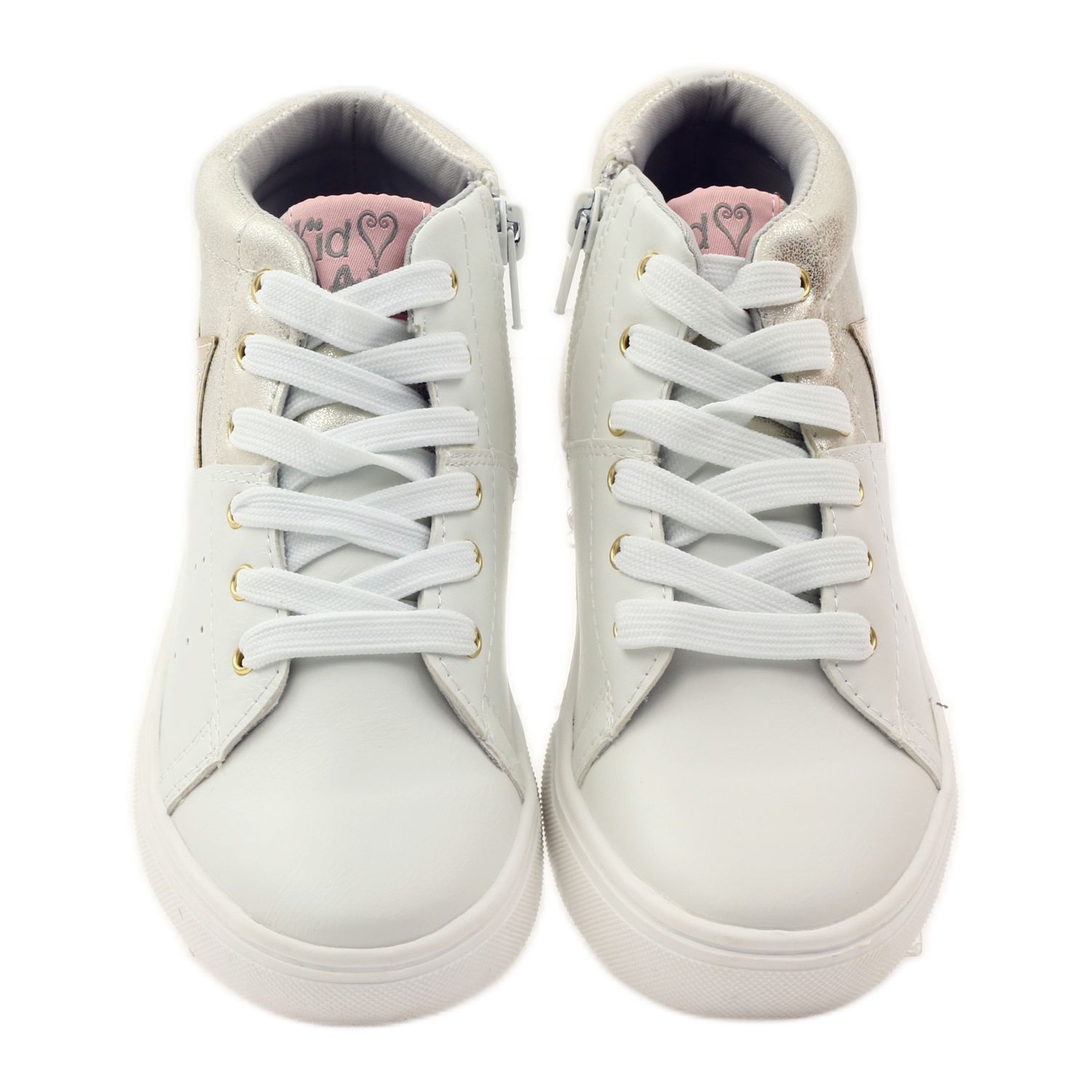 Ces chaussures au design tendance en blanc avec des accents dorés se distinguent par un design intéressant qui plaira sûrement à de nombreuses filles. L'intérieur des chaussures est en matière textile et la semelle intérieure en cuir garantit confort et commodité lors du port.