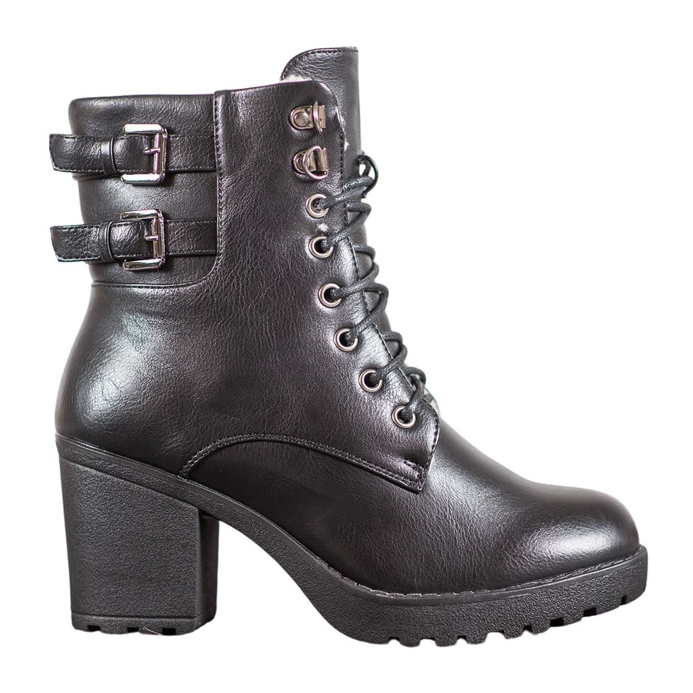 La fermeture à lacets et la fermeture éclair permettent de l'enfiler et de l'enlever facilement, et la boucle décorative ajoute un caractère unique aux chaussures. À son tour, la semelle synthétique avec bande de roulement offre une excellente adhérence et durabilité.