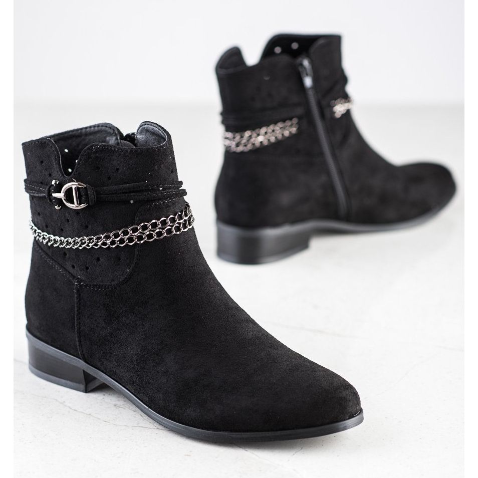 Les bottines VINCEZA avec une chaîne décorative en noir sont un choix idéal pour les femmes qui apprécient l'élégance et le confort au quotidien. Fabriqués en imitation daim de haute qualité, ils ont un caractère élégant et décontracté, parfait pour la saison automne/hiver.