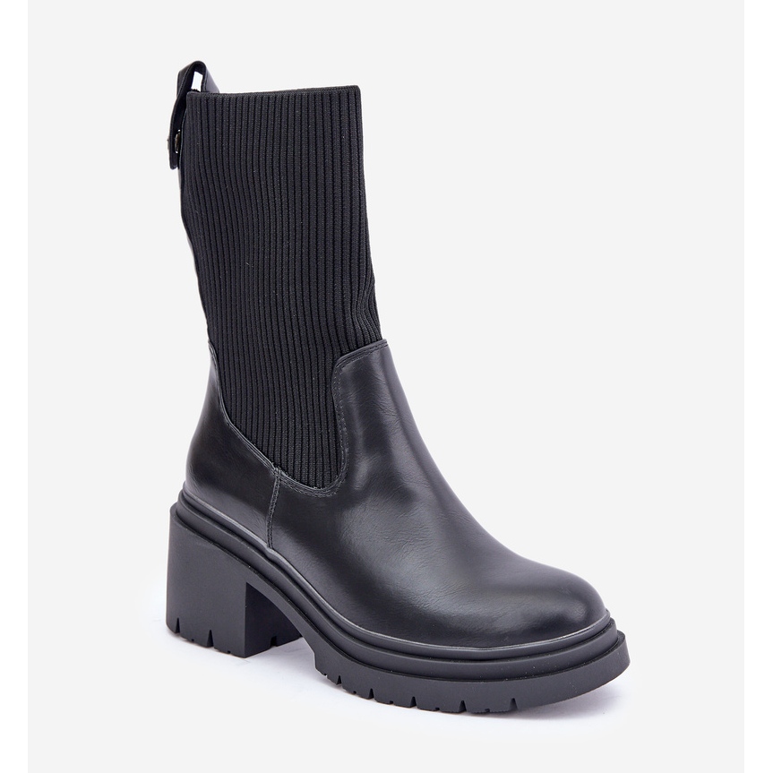 Détails: Bottines avec chaussette sur talon massif noir le noir