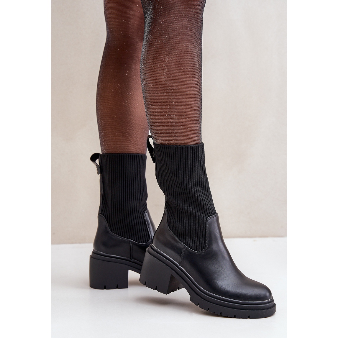 Découvrez l'élégance et le confort en un ! Les bottes chaussettes avec un talon massif de couleur noire classique sont le choix parfait pour les femmes modernes qui apprécient le style et le confort. La tige flexible semblable à une chaussette s'adapte parfaitement à la jambe et le talon bloc stable de 7 cm offre soutien et confort lors d'un port à long terme.