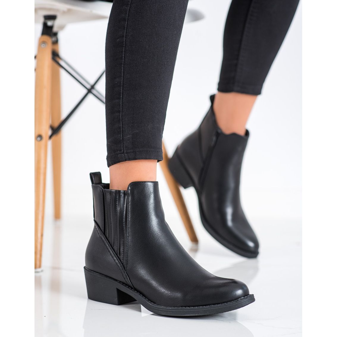 Fabriquées en cuir écologique de haute qualité, ces bottines sont non seulement élégantes, mais également respectueuses de l'environnement. Le contrefort du talon est fermé et rigidifié, ce qui offre un soutien et un confort de port supplémentaires. Le bout rond et la hauteur supérieure dépassant la cheville rendent ces bottes non seulement à la mode, mais aussi fonctionnelles.