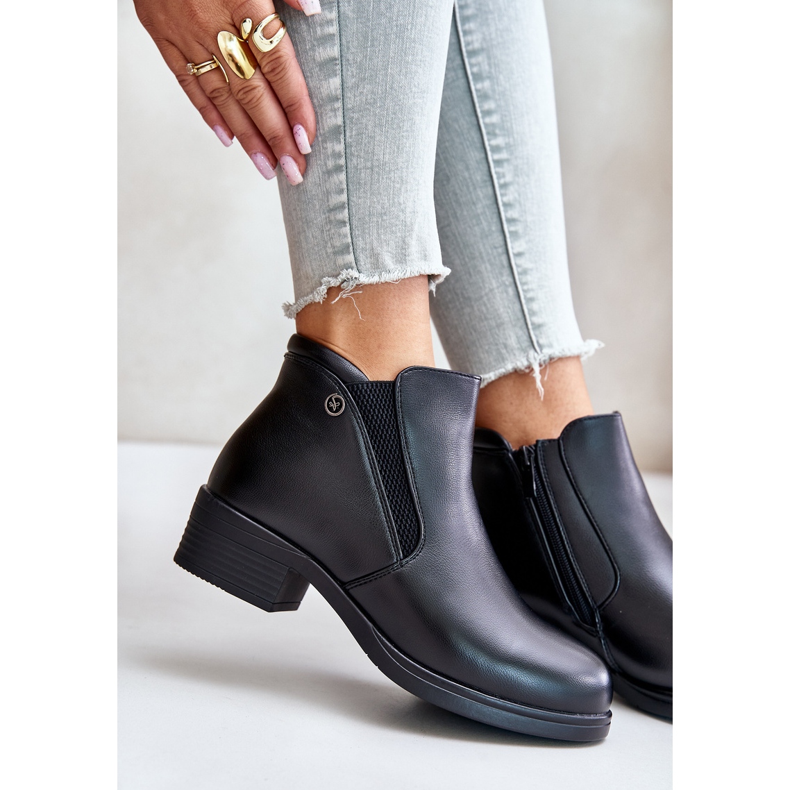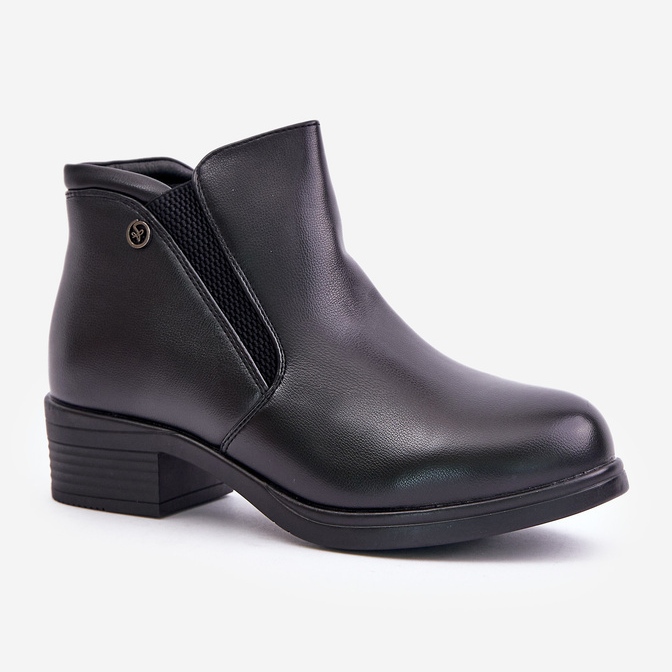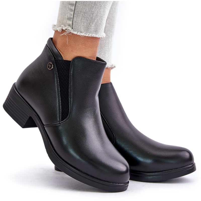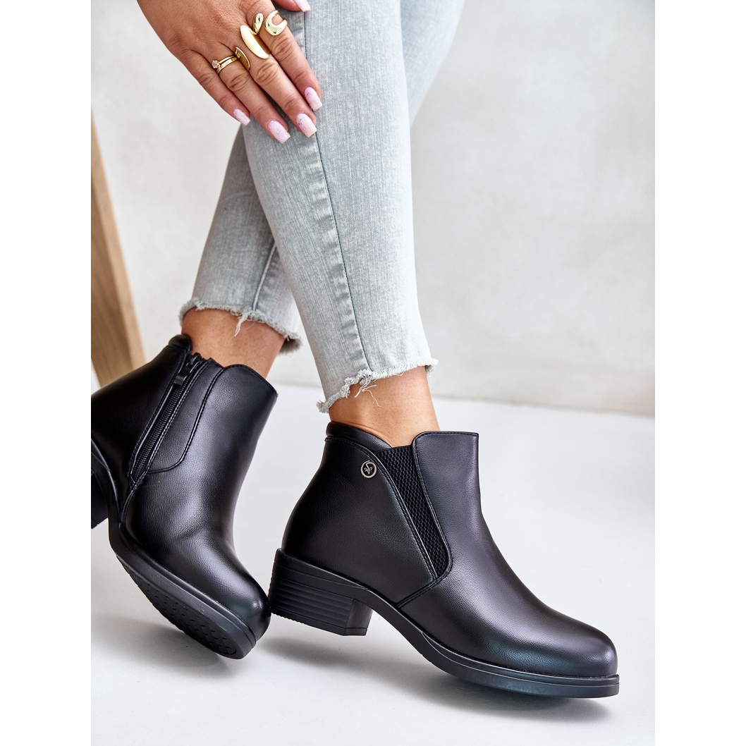 L'intérieur des bottes est rembourré de fourrure épaisse, qui garantit une chaleur agréable les jours plus frais - parfait pour la saison automne / hiver. Le nez rond ajoute une subtilité au modèle et fait que les bottes se mélangent parfaitement avec des stylisations décontractées. Vous obtenez non seulement une apparence à la mode, mais aussi le confort de porter grâce à l'insert du cuir écologique.