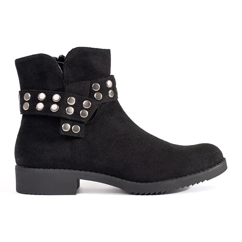 Bottines basses femme en daim avec strass noir