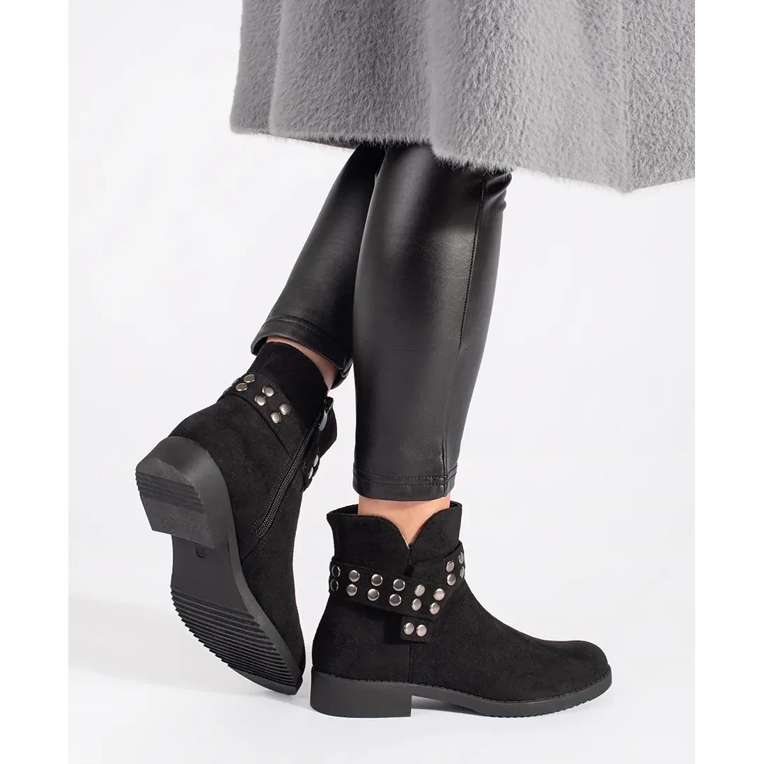 Built-dans le talon et un nez rond ajoutent un charme subtil à ces bottes, et les jets d'argent leur donnent un personnage à la mode. Les semelles en plastique noir sont lisses, ce qui affecte leur polyvalence - ils correspondront à de nombreux styles, à la fois décontractés et plus élégants.
