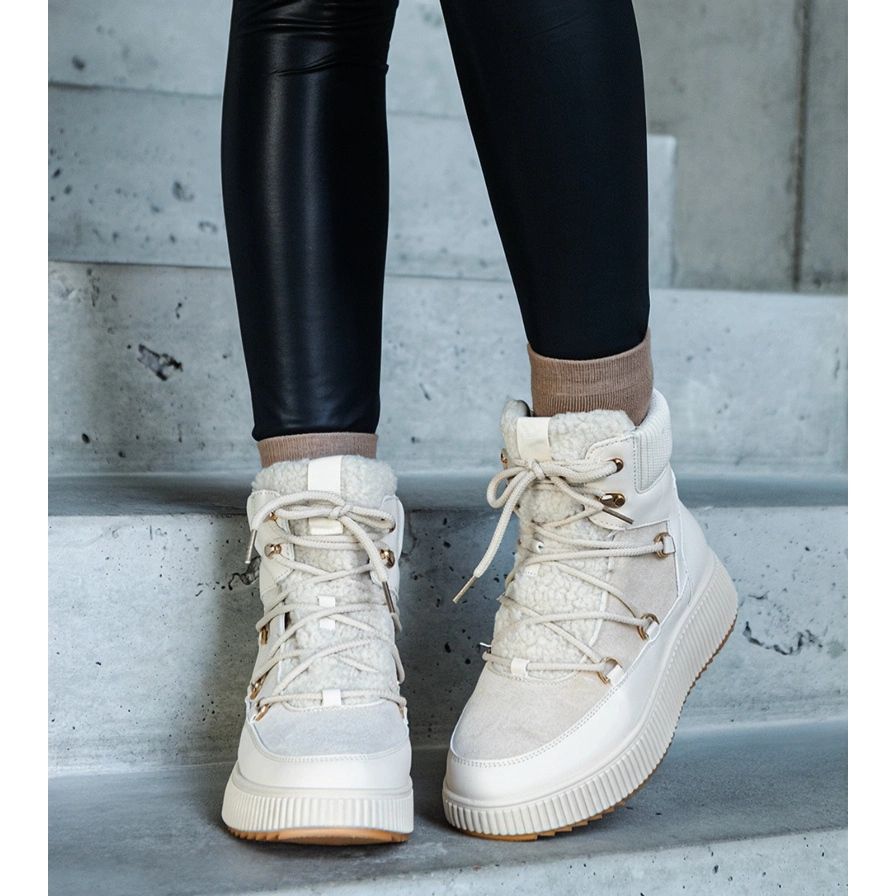 Le cube coupé avec un nez rond fait que les bottes se mélangent bien avec les stylisations quotidiennes et élégantes. Grâce à la couleur beige neutre et légère, ils sont faciles à combiner avec d'autres articles de garde-robe. Des détails de haute qualité et intéressants, tels que la fourrure, rendent ces bottes non seulement pratiques, mais aussi très mode.