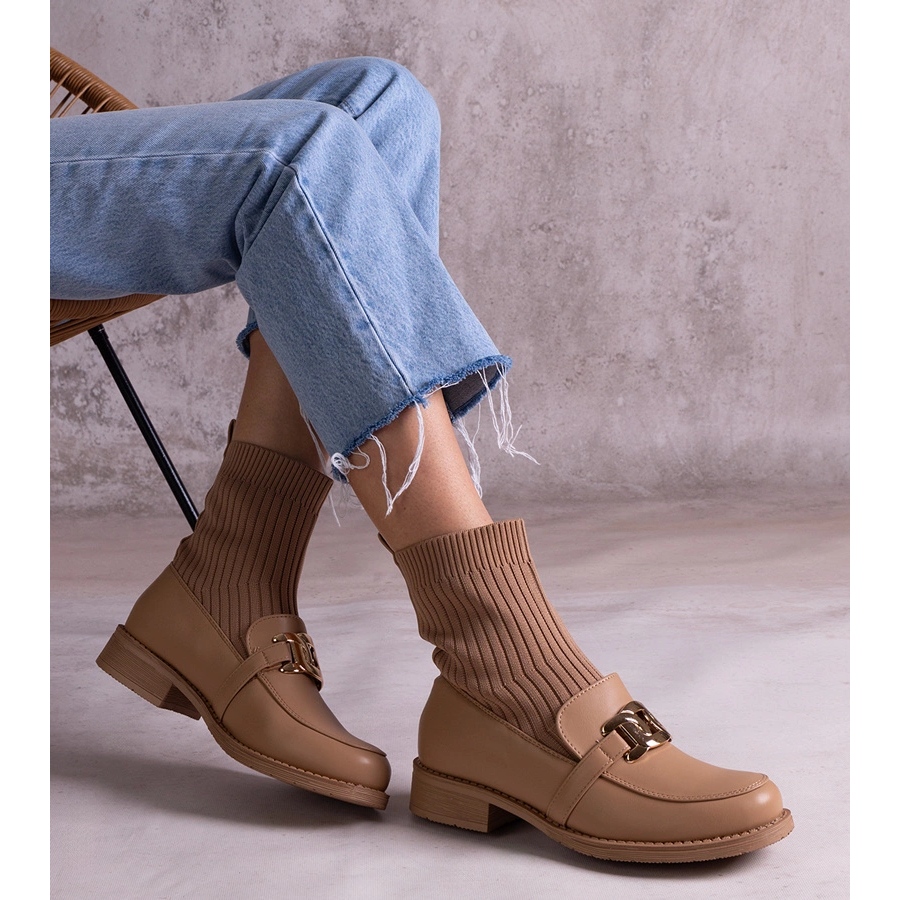La tige dans la teinte DK.Beigy fait que les bottes s'adaptent facilement à diverses stylisations, des tenues quotidiennes aux créations plus formelles. Grâce au talon plat avec une hauteur de 3,5 cm, porter le confort est au plus haut niveau, ce qui les rend parfaits pour chaque occasion.