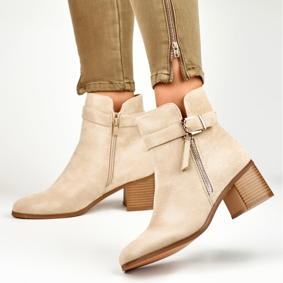 - Modèle: Bottines beiges à petit talon avec boucle