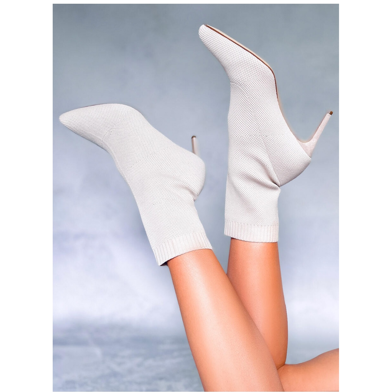 Découvrez des bottes chaussettes à talons hauts beiges uniques qui sont un incontournable du dressing de chaque femme ! Ces bottines élégantes allient design moderne et confort de port. Fabriquées en tissu élastique semblable à une chaussette, elles s'adaptent parfaitement à la forme du pied, assurant un confort à chaque pas.