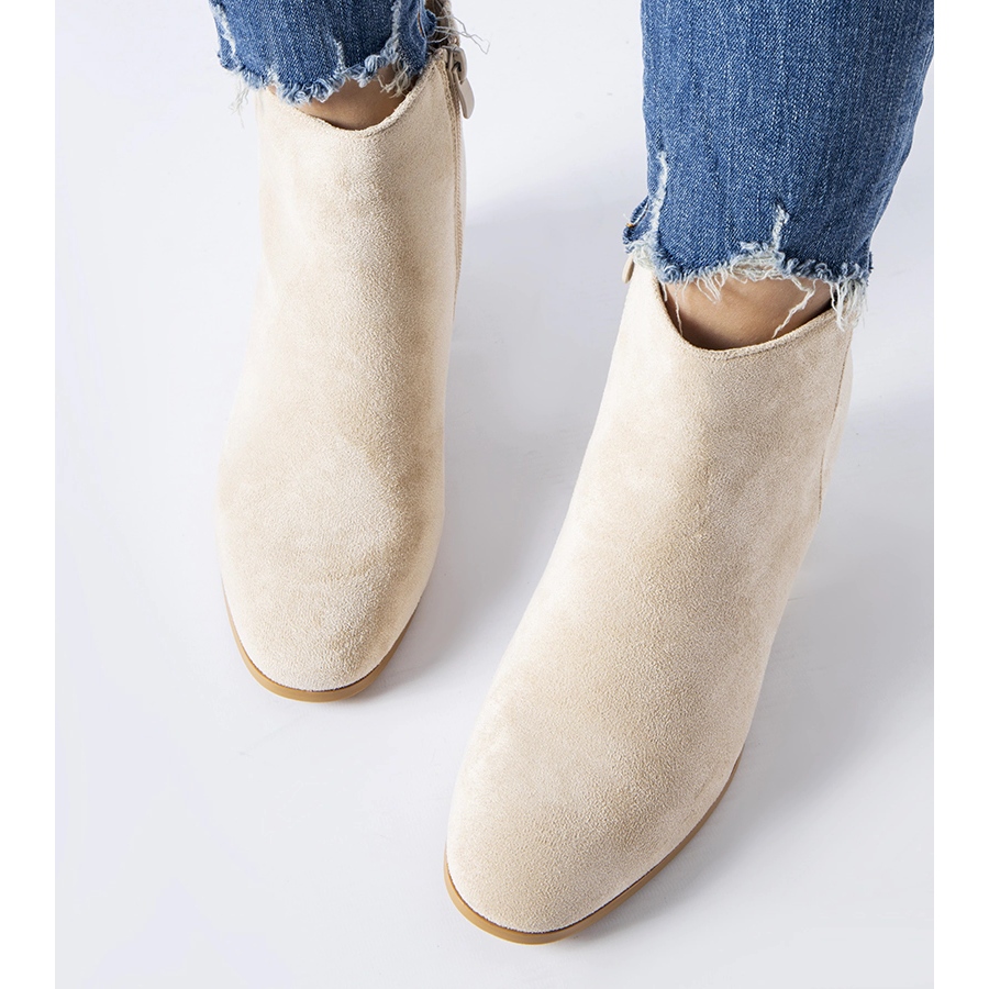 Les bottines beiges à talons bas sont des chaussures de haute qualité au look moderne, destinées aux femmes qui apprécient le confort et l'élégance. Ils sont fabriqués en daim écologique rose, non seulement à la mode, mais également résistant à l'humidité. Un élément extrêmement pratique est la fermeture éclair sur le côté, qui facilite l'enfilage et le retrait des chaussures.