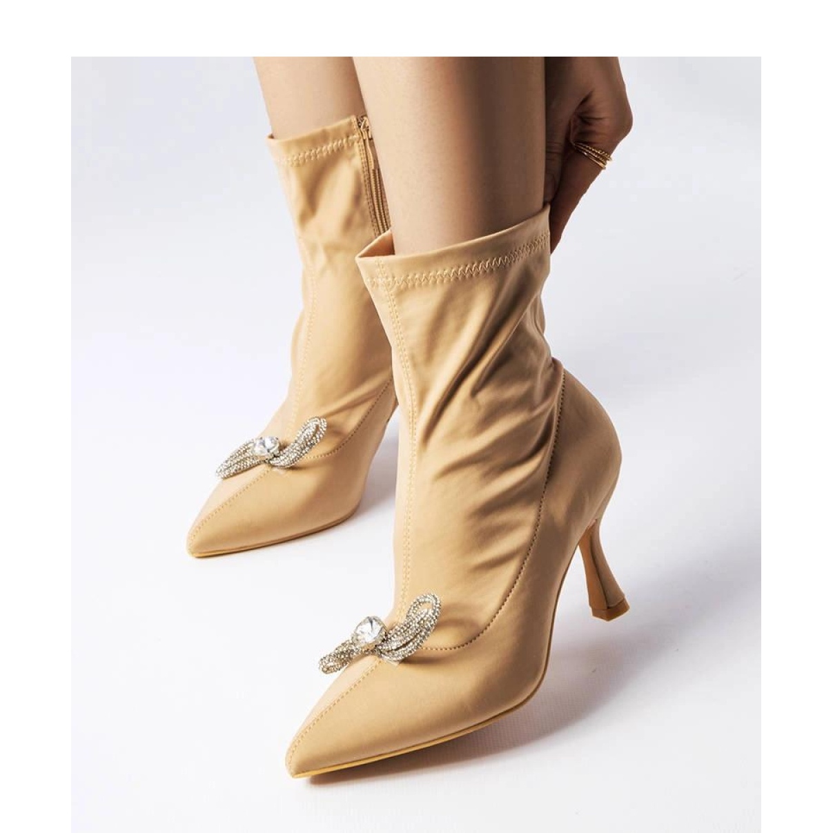 Les élégantes bottines beiges ornées d'un nœud en zircon de la collection Mars sont le choix parfait pour les journées plus froides. Numérotation standard, nous vous conseillons donc de choisir votre taille habituelle. Fabriqués dans un tissu de haute qualité, ils disposent d'une fermeture éclair sur le côté pour un enfilage facile. La semelle est en plastique beige résistant. Parfait pour différents styles pour la saison automne et hiver. Isolés, ils assurent un confort dans toutes les conditions.