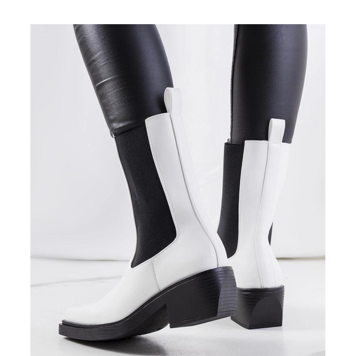Bottines Maret blanches Le modèle Maret est une proposition parfaite pour tous les fans de design original. Le bout carré, qui revient comme l'une des tendances phares de cet automne, ajoute du caractère aux chaussures. La tige est en cuir écologique de haute qualité et les inserts en matériau flexible permettent aux chaussures de s'adapter parfaitement au pied. L'intérieur est fini avec un matériau doux, ce qui le rend confortable même lors des chaudes journées d'automne. Numérotation standard, il vaut donc la peine de prendre en compte votre taille lors de l'achat. Les bottes ont une semelle en caoutchouc noir, une fermeture à enfiler et sont le choix parfait pour la saison automne/hiver. L'isolation n'est pas un élément supplémentaire des chaussures.