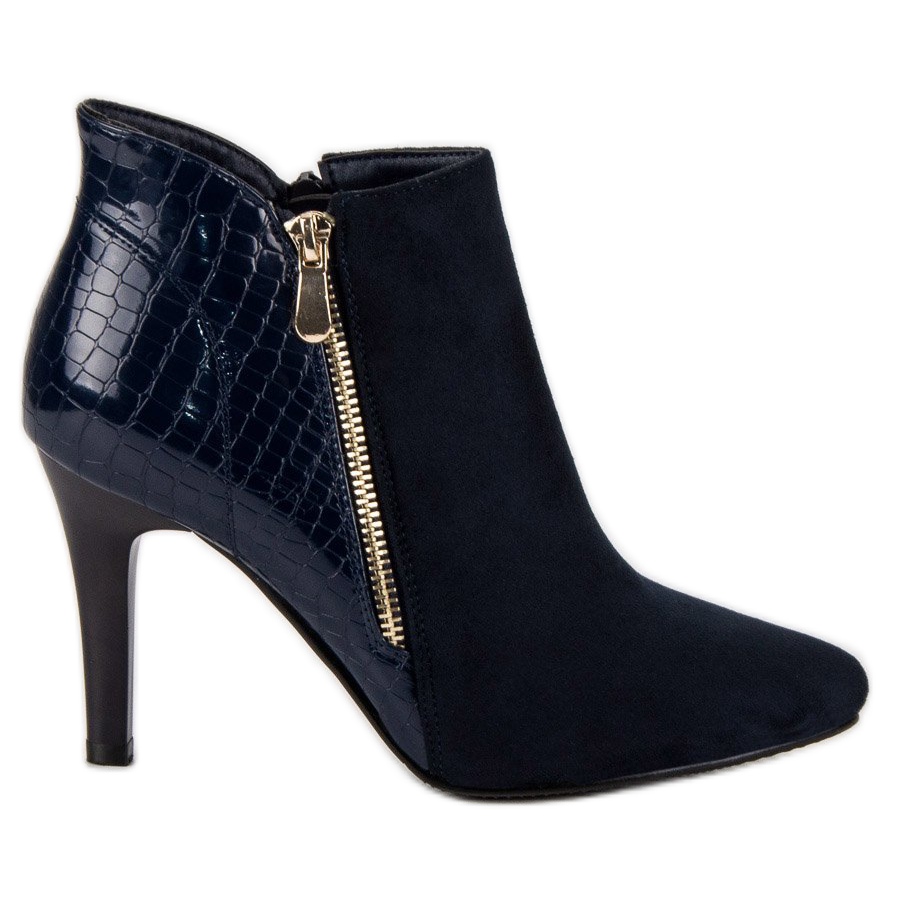 Les bottines à talons hauts bleu marine sont un choix parfait pour les femmes qui souhaitent allier élégance et un peu de férocité. Ces chaussures bleu marine foncé uniques séduisent par leur originalité et leur style. Ils sont fabriqués dans des matériaux de haute qualité, associant du daim écologique et du cuir verni, ce qui leur confère un caractère unique.