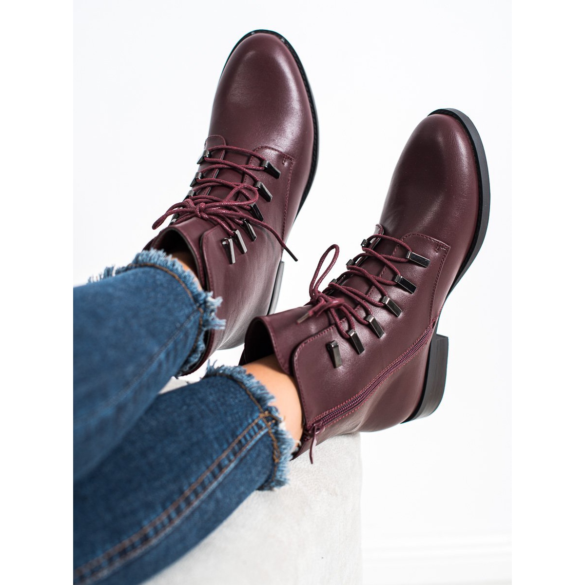 Détails: SHELOVET Bottines bordeaux classiques rouge