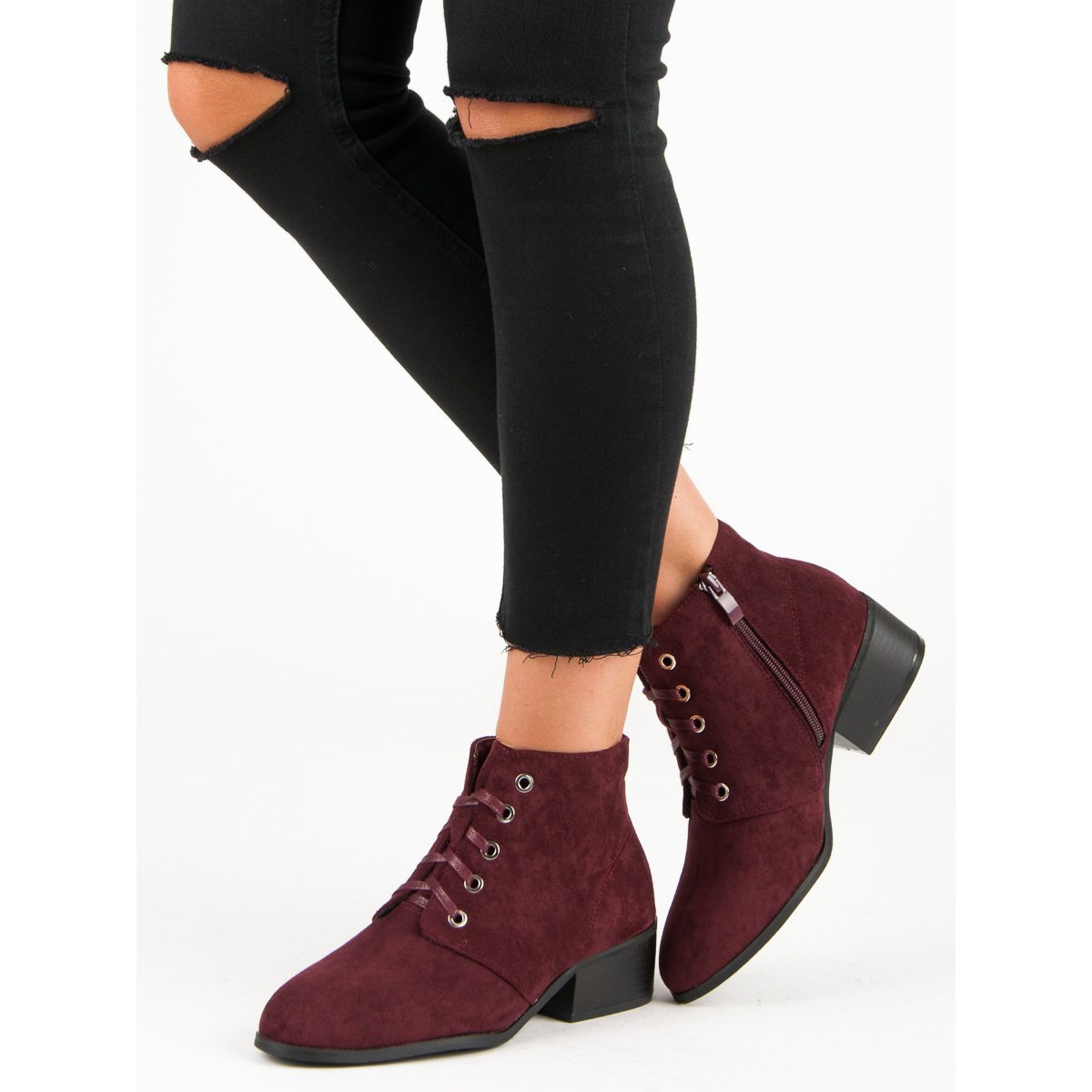 Les bottines bordeaux élégantes et confortables sont un incontournable pour la saison automne et hiver ! Fabriquées en cuir suédé écologique, ces chaussures à lacets à bout arrondi sont non seulement extrêmement élégantes, mais offrent également un maximum de confort au porté. Grâce à un talon bas et stable de 4 cm, elles constituent une solution parfaite pour les sorties quotidiennes, sans alourdir vos pieds.