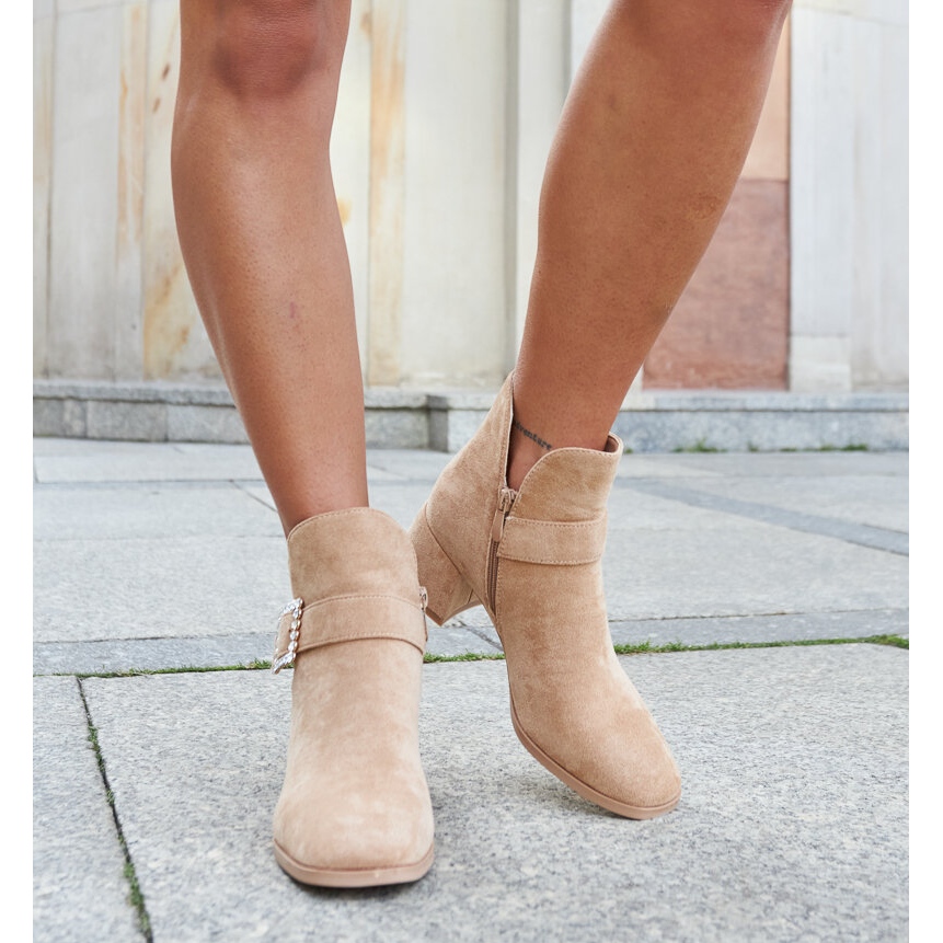 Les bottines caramel avec zircons Anibal de couleur beige sont un choix parfait pour les femmes qui souhaitent allier confort et élégance. Fabriquées en cuir suédé écologique de haute qualité, ces bottes garantissent durabilité et résistance aux dommages, elles vous serviront donc pendant de nombreuses saisons.